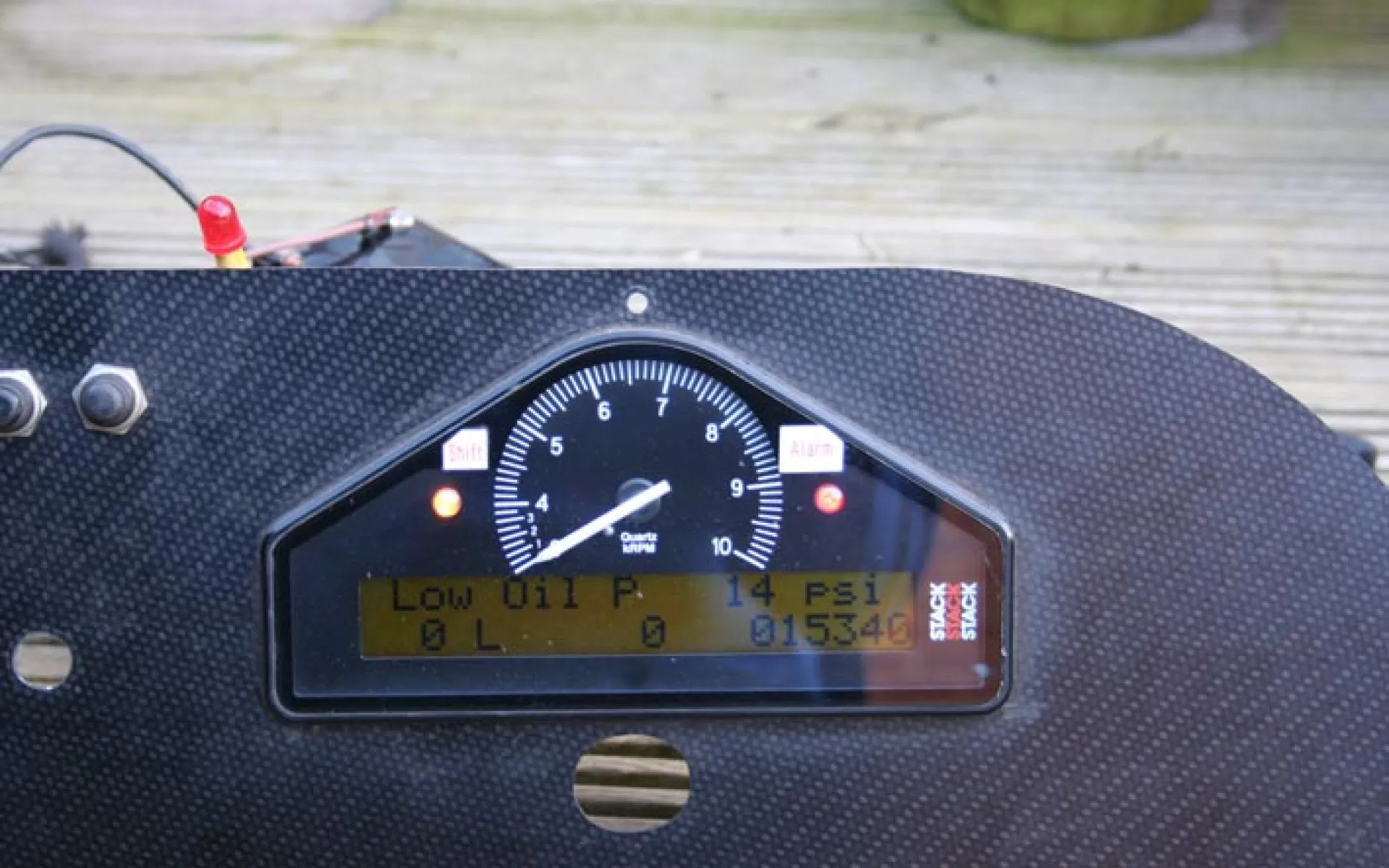 The unit comes complete with a printed copy of the downloadable instructions [from Stack?s web site] and a Carbon fiber dash which it is still fitted to. The dash includes some switches and the 4 stack push buttons
