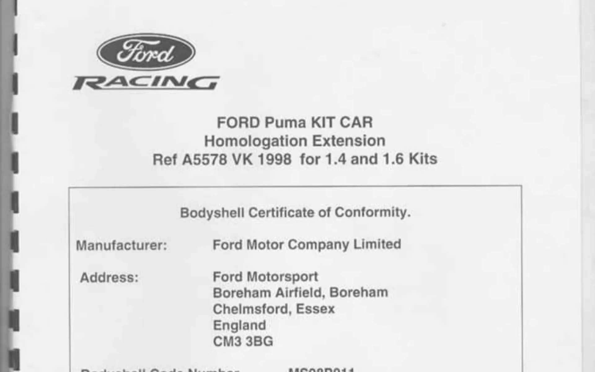 For sale original Ford Motosport Ford Puma s1600 Kit Car chassis N.11 which is the first that builded by Chris Birkbeck, was tested and prepared with the cooperation of Colin McRae.