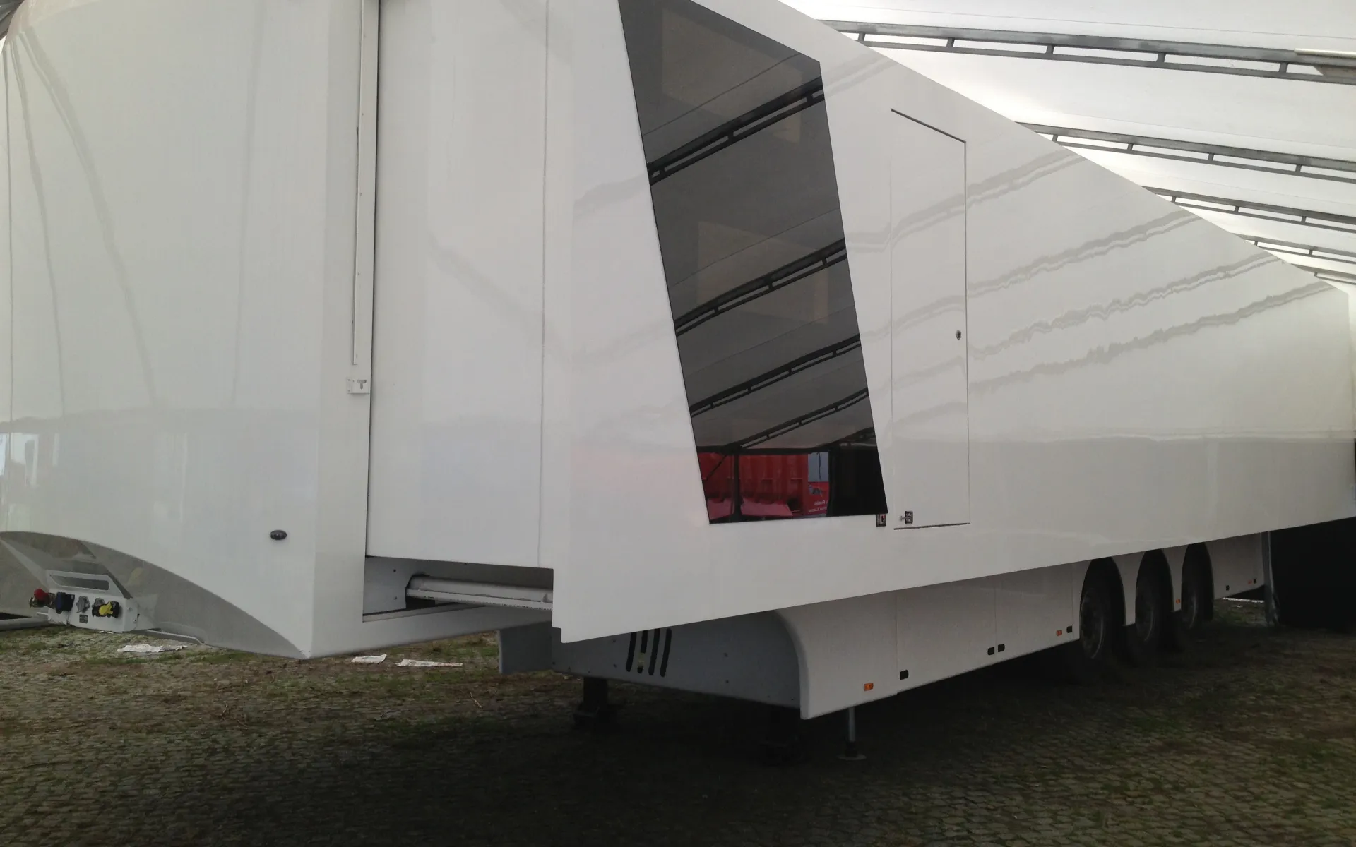 Prices from 85.000, New chassis, 13,60X2,55,4,00 and 3,38 inside, pneumatic suspension, 2 axles, body in plywood, painted in white, automatic side door, new 2000Kg Dhollandia taillift, electric system, floor in rubber, prepared for 3 or 4 cars.